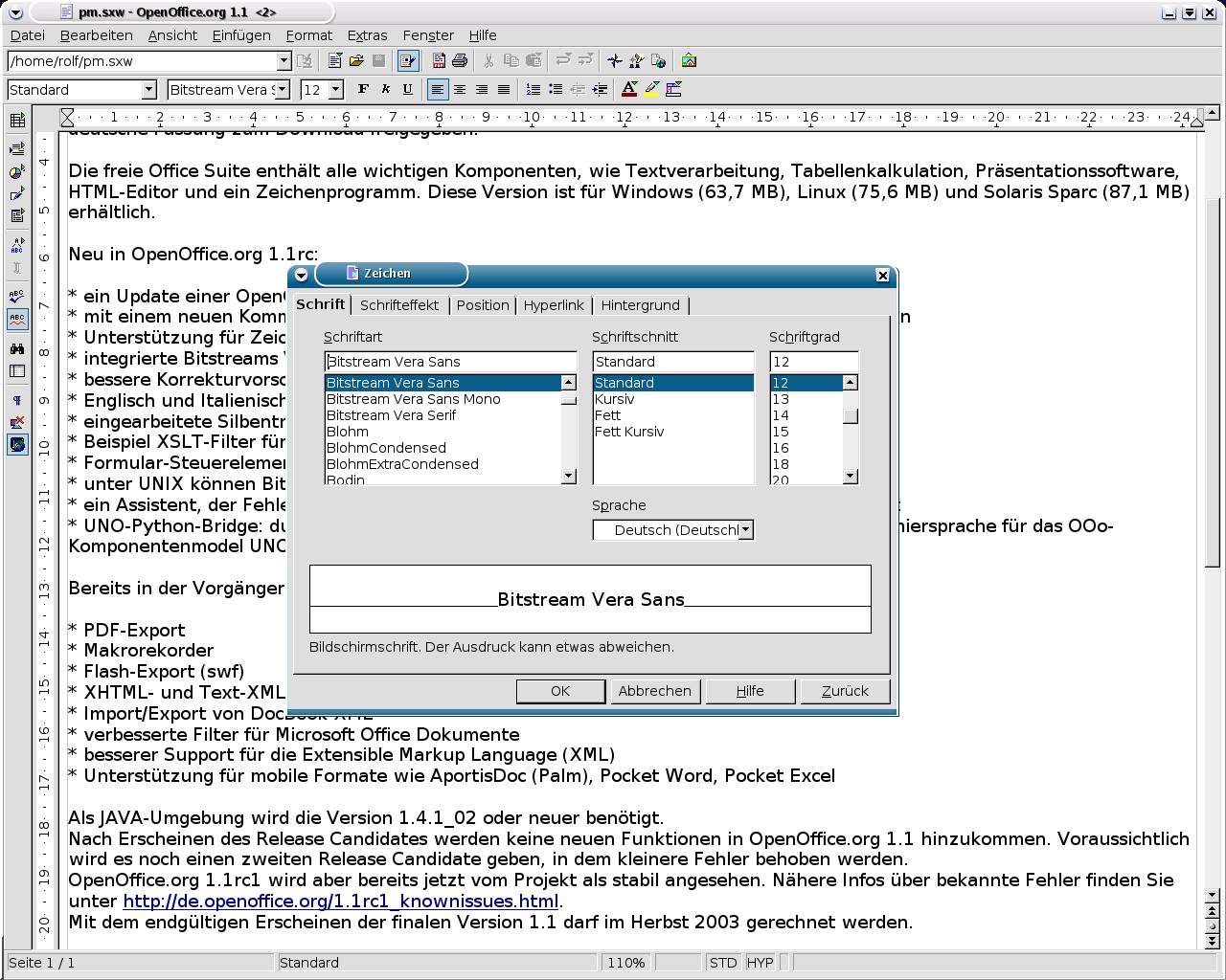 Screenshots - OpenOffice.org 1.1 - Bitstream-Vera -- eine mitgelieferte Schriftart